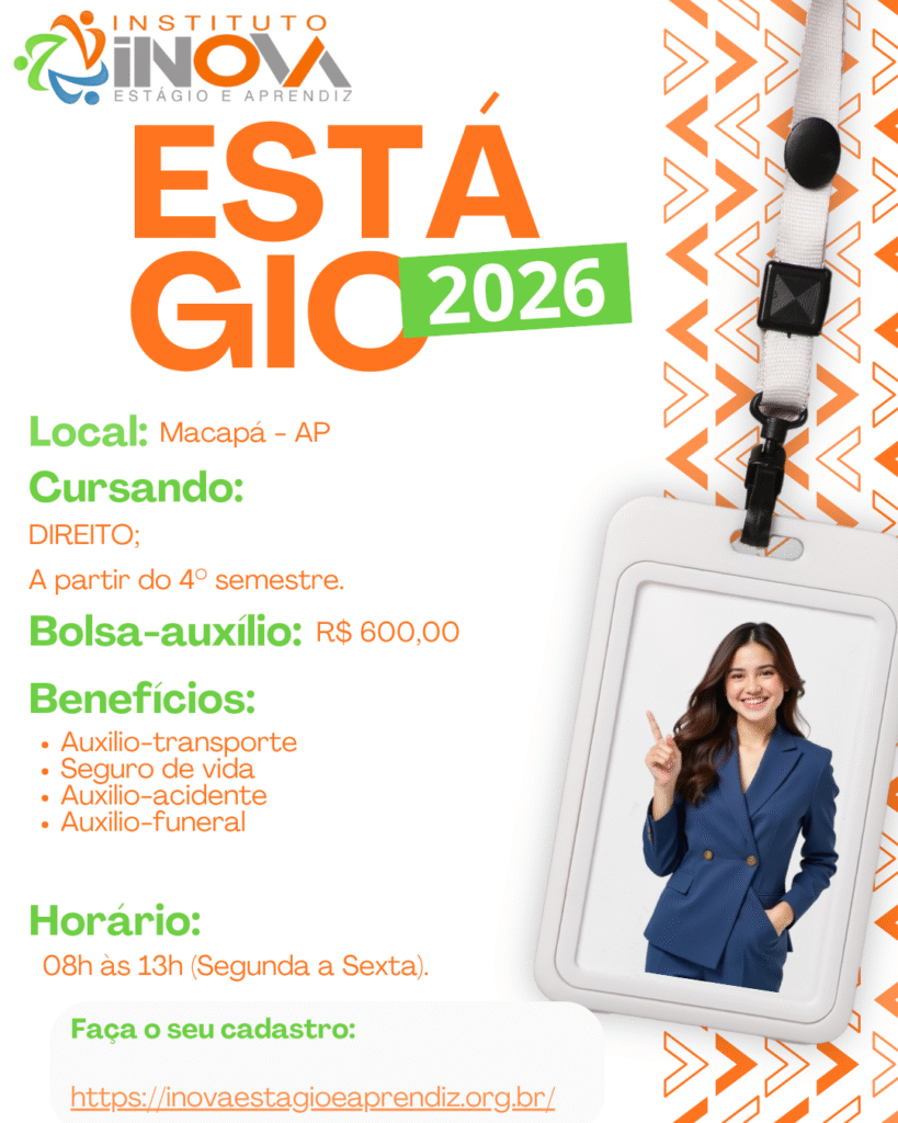 Horário de estágio: 08h às 13h;Segunda à sexta;Valor da Bolsa auxílio: R$ 600,00;Auxílio transporte: R$ 150,00 Seguro de vida.