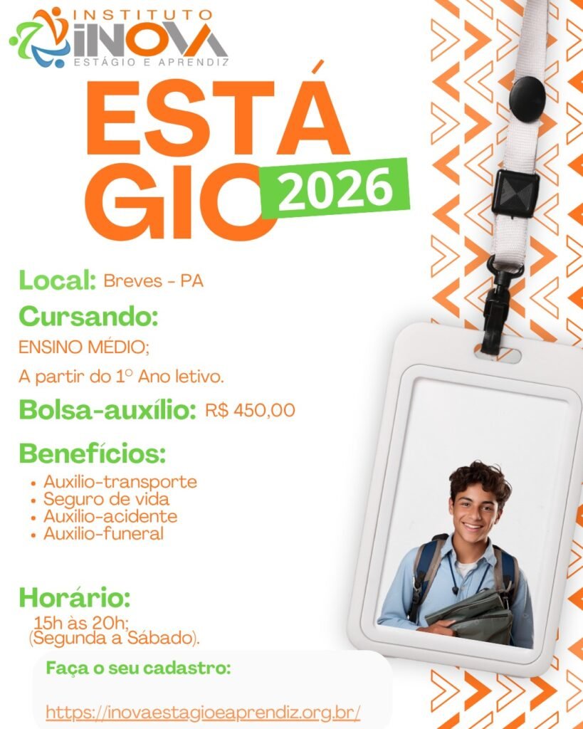 Horário de estágio: 15h às 20h (5h diárias);