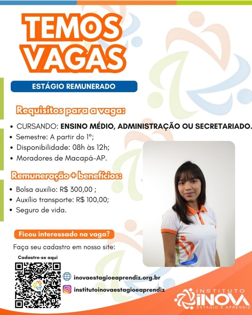 Horário de estágio: 08h às 12h (4h diárias)