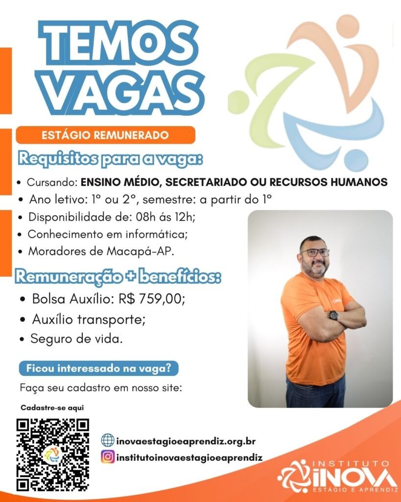 * Boa comunicação;* Conhecimento em informática básica;;* Proatividade e organização.EMPRESA LOCALIZADA NO BAIRRO DO TREM EM MACAPÁ-AP